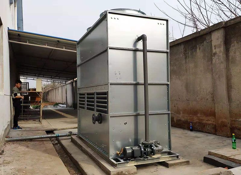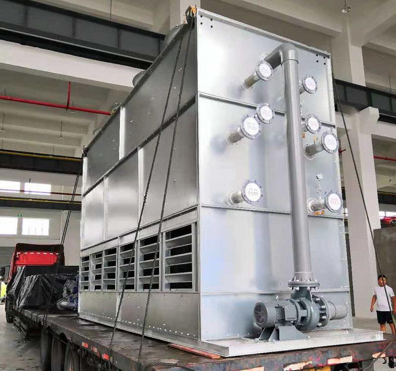 閉式冷卻塔(又稱蒸發(fā)式空氣冷卻器、密閉式冷卻塔或封閉式冷卻塔)是在塔內(nèi)放置一個管式換熱器,通過循環(huán)空氣、管外噴淋水和管內(nèi)循環(huán)水之間的熱交換來保持溫度下降。由于循環(huán)水封閉在管道中,可以保護水質(zhì)不受污染,